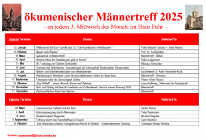 Weitere Informationen und das jeweilige Jahresprogramm erhalten sie unter maennertreff@kirche-werden.de.
