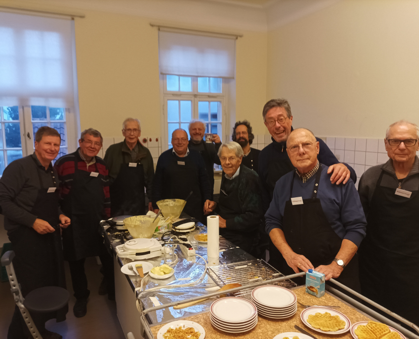 Natürlich gibt es auch lockere Themen in unserer Männerrunde. So treffen wir uns in unregelmäßigen Abständen zu Besichtigungen, unternehmen Wanderungen, treffen uns zum Grillen und fassen als lebendiger Teil der Evangelischen Gemeinde Werden tatkräftig mit an, wenn der Weihnachtsbaum aufgestellt wird. Auch das Waffelbacken für einen wohltätigen Zweck gehört zu unserem Jahresprogramm.